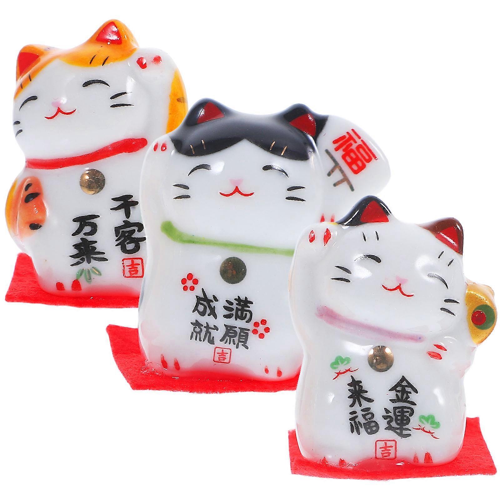 3pcs Mini Ceramic Ornaments Creative Home Decor for Living Room Office Stylish Desktop Decoration Cat Figurines