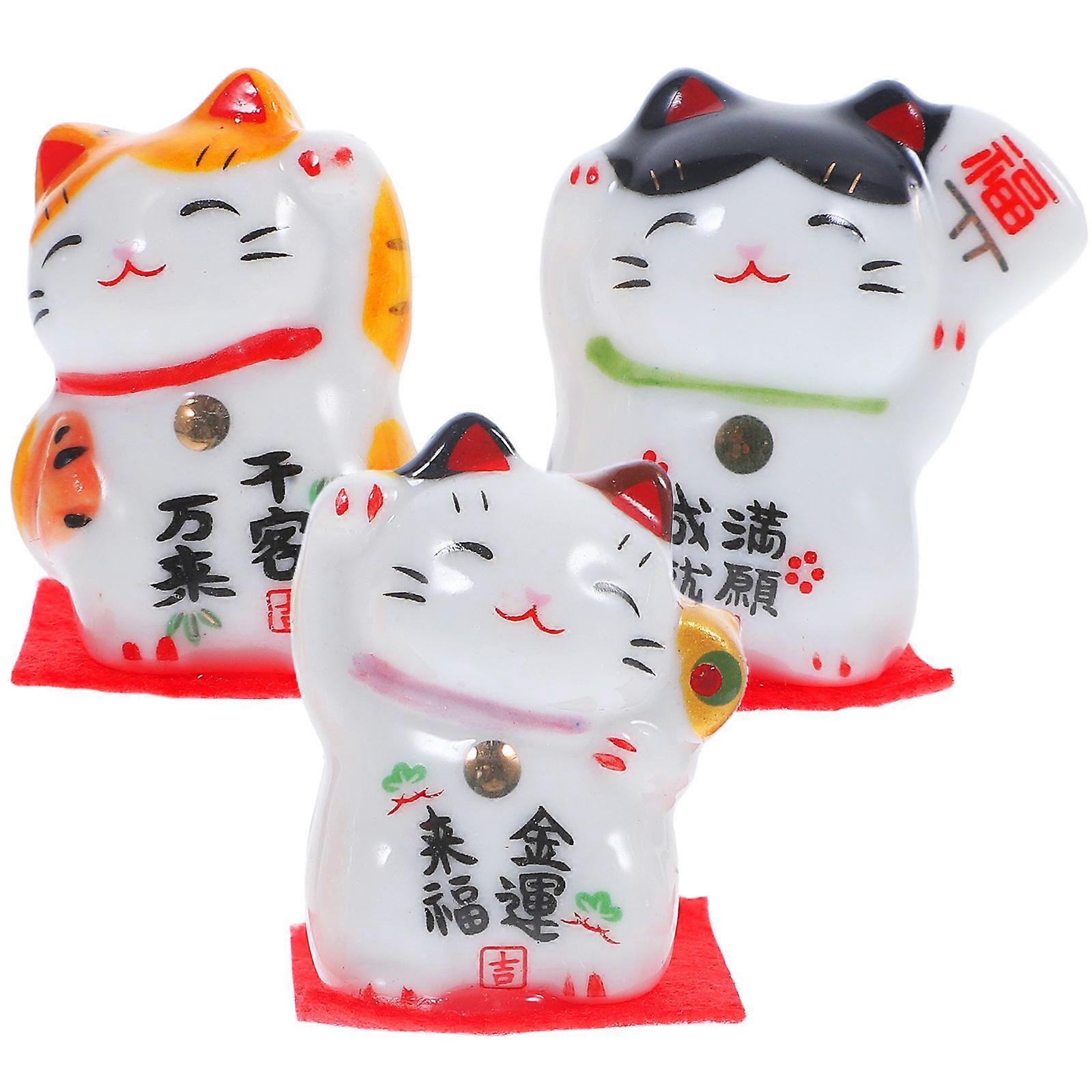 3pcs Mini Ceramic Fortune Cat Figurines Desktop Decor Creative Tabletop Adornments for Living Room Office Home Gift