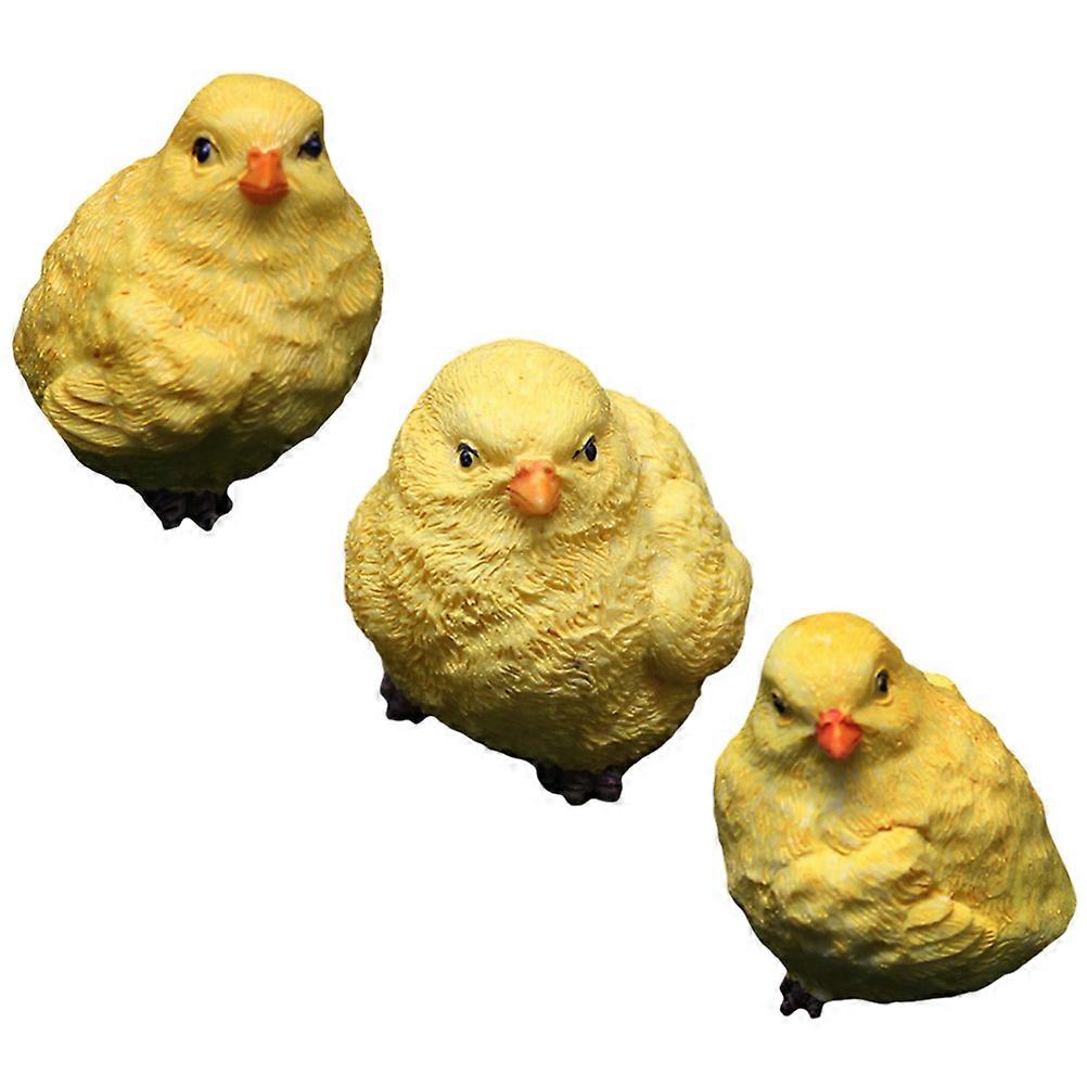Resin Chick Figurine 3Pcs Yellow Vivid Cartoon Chicks Miniature Chick Figurines for Decor