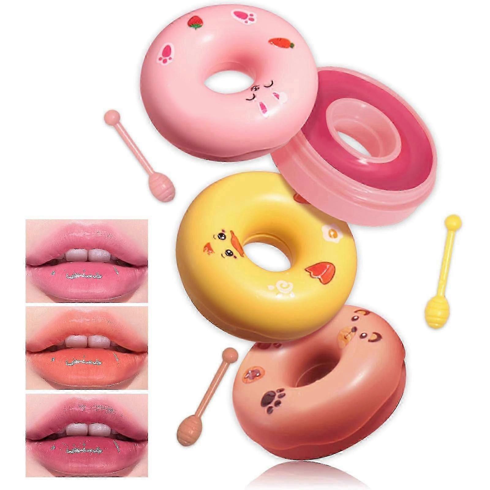 3pcs Lip Sleeping Mask Set, Cute Doughnut Shaped Plumping Lip Balm For All Day