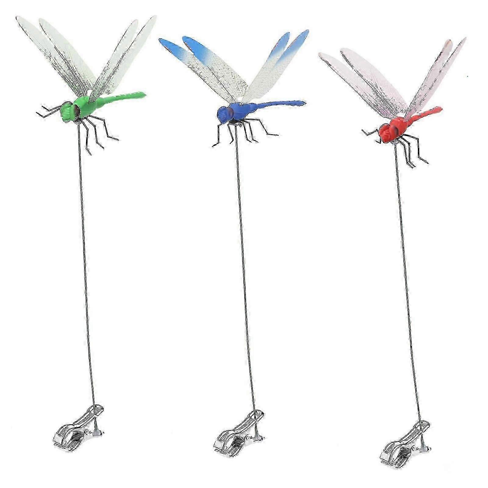3Pcs Fake Dragonfly Clip, Clip on Dragonfly for Outdoors 3D Dragonfly Garden Decor