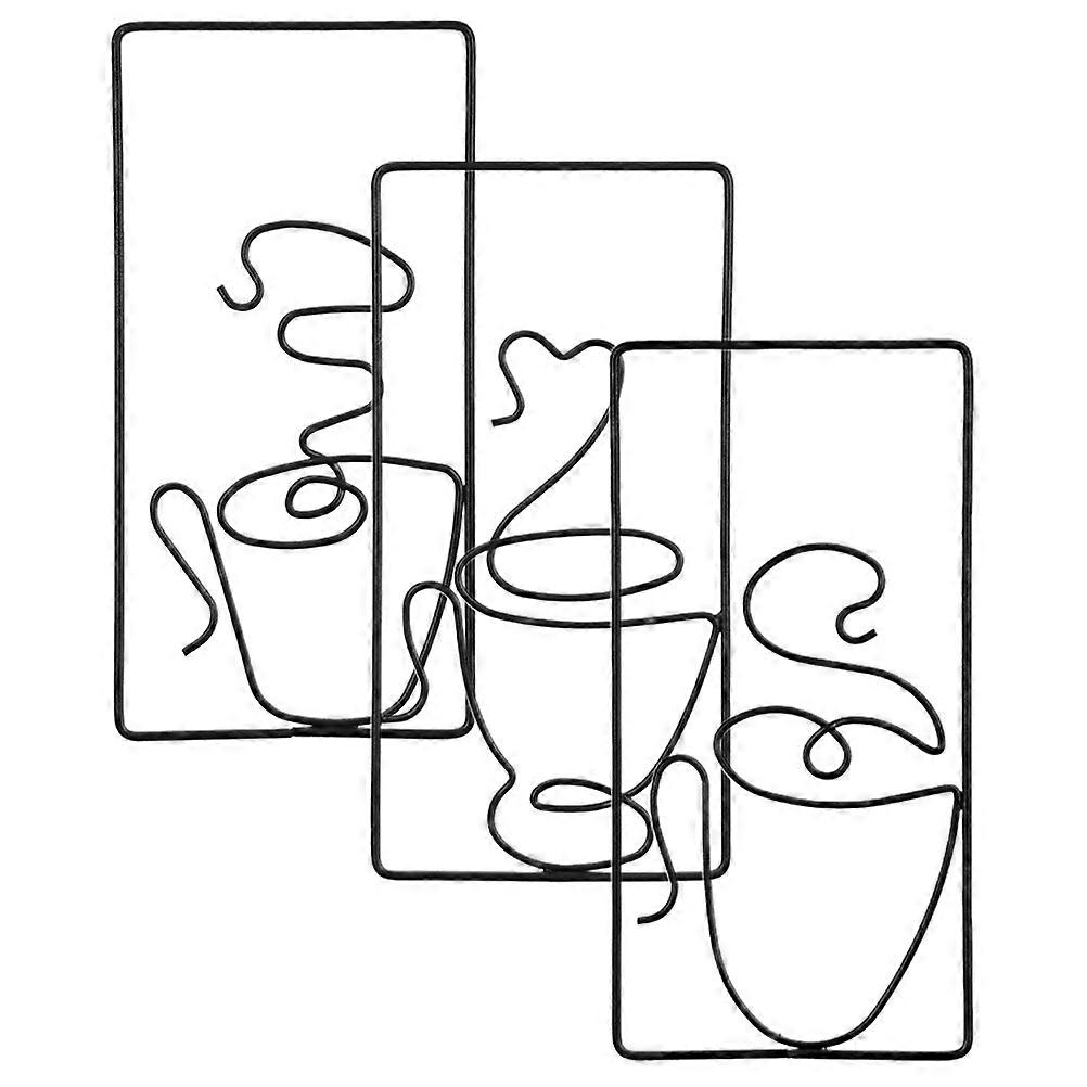 3pcs Wall Hanging Coffee Mugs Decor, Elegant Metal Art for Kitchen, Tea Room, Coffee Bar, Restaurant and Living Space, Charming Home Wall Decoration