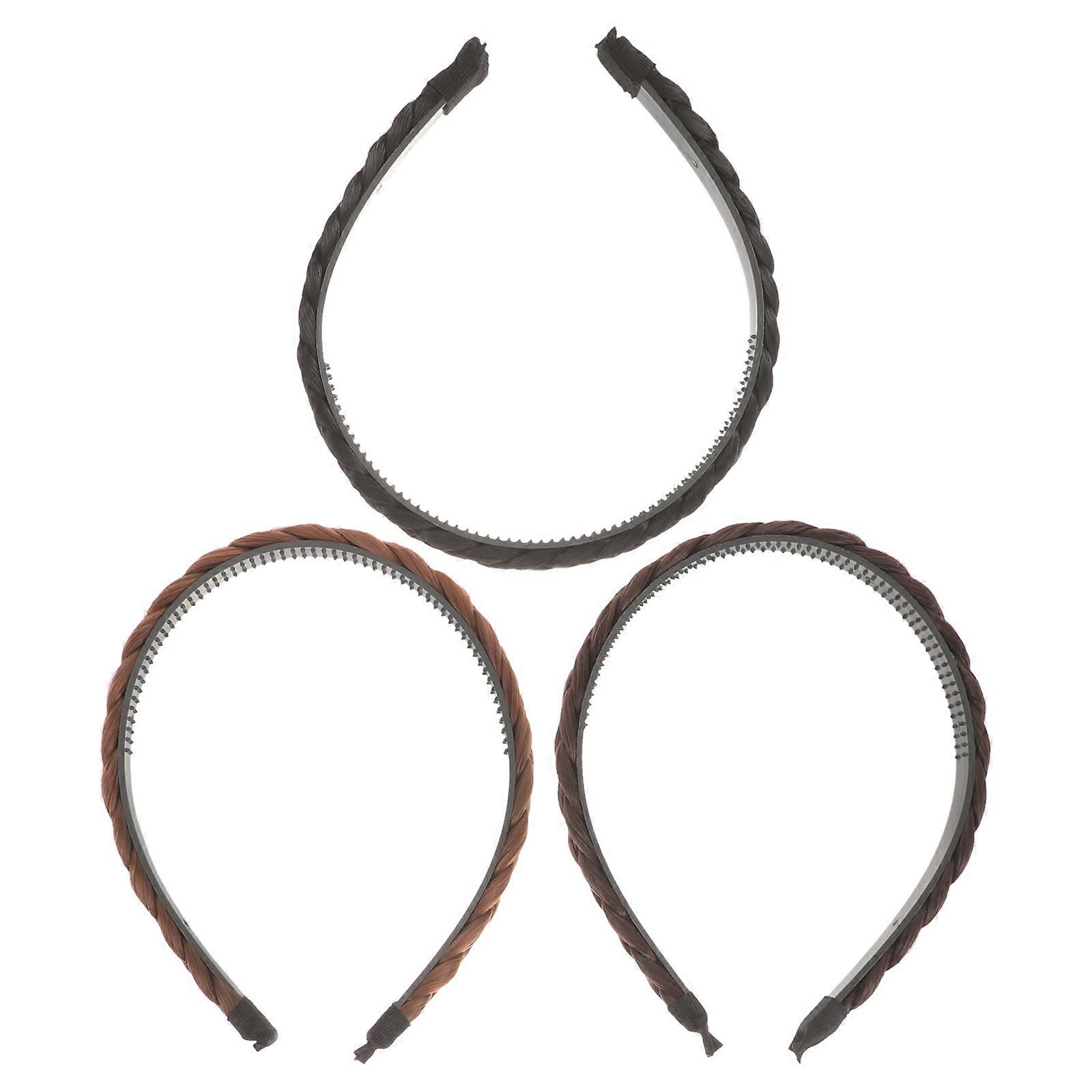 3 Pcs Women's Synthetic Hair Loop Headbands Lightweight Wrapped Hairbands for Adults in Black, Light Brown, Dark Brown – Comfortable All Day Wear,
