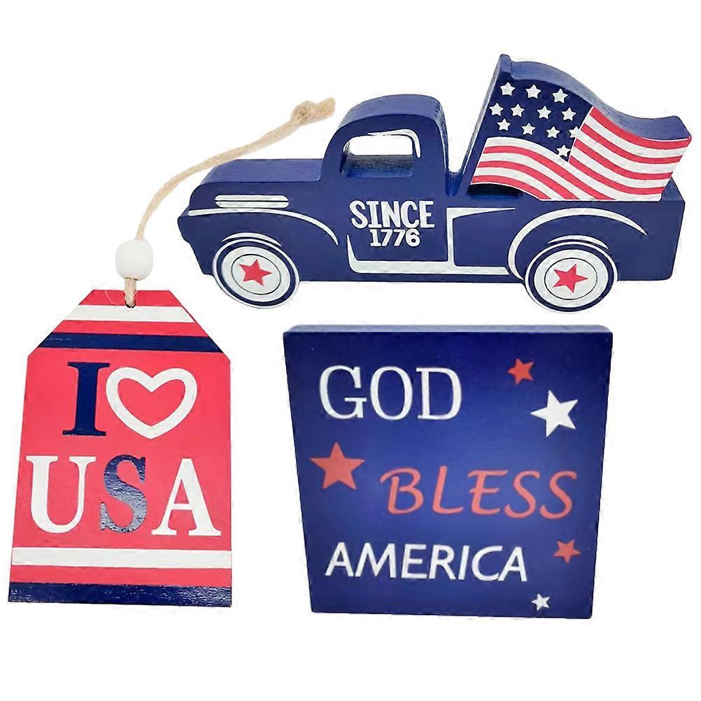 3Pcs Patriotic Tiered Tray Decor Patriotic Memorial Day Wood Signs Independence Day Pendant