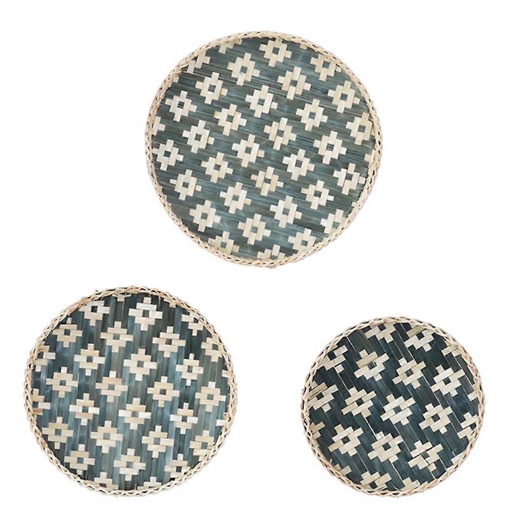 3pcs Handmade Hanging Wall Basket Round Bamboo Woven Hanging Decorative Trays
