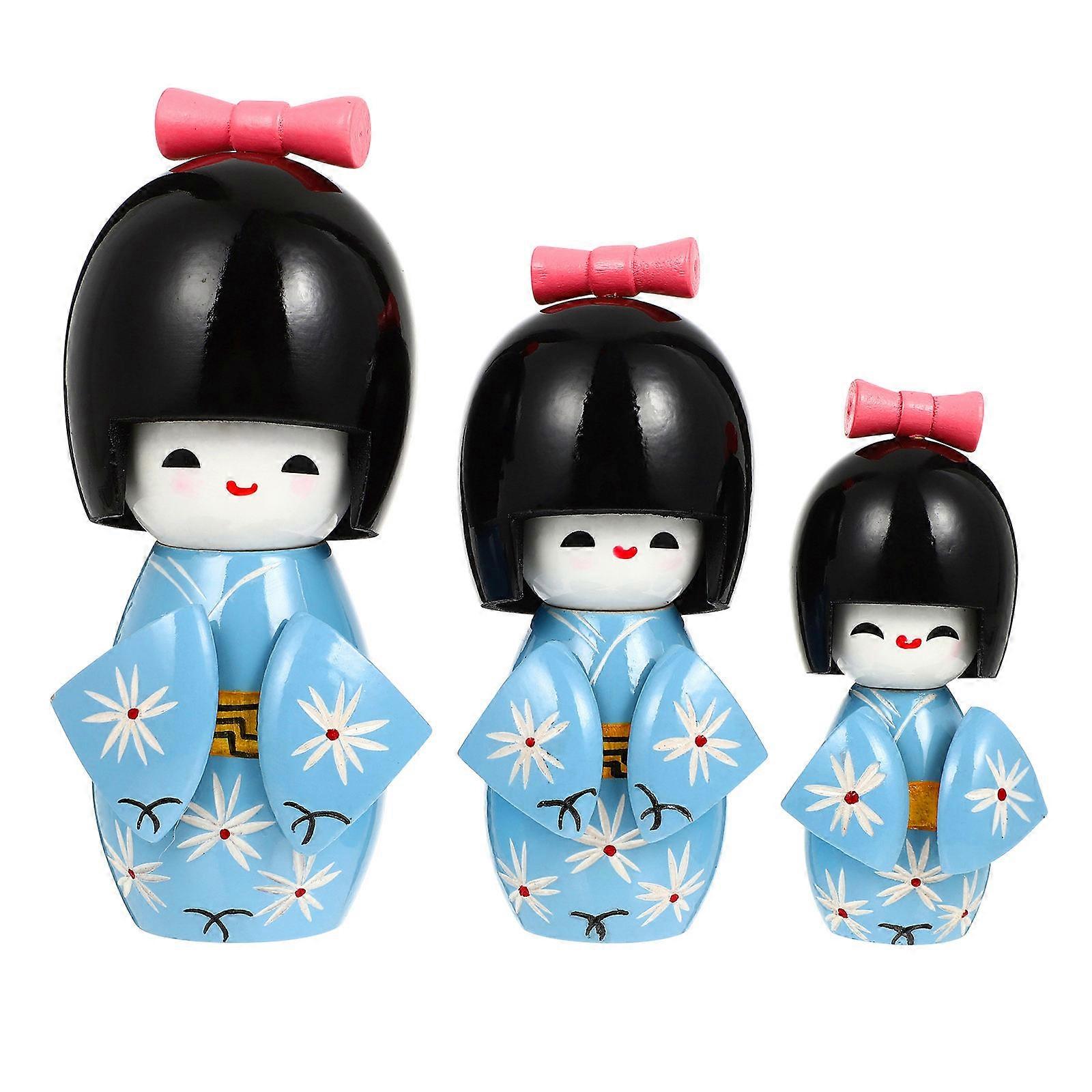 3pcs Hand Painted Wooden Japanese Doll Set – Kimono Ornaments for Home, Office & Restaurant Decor