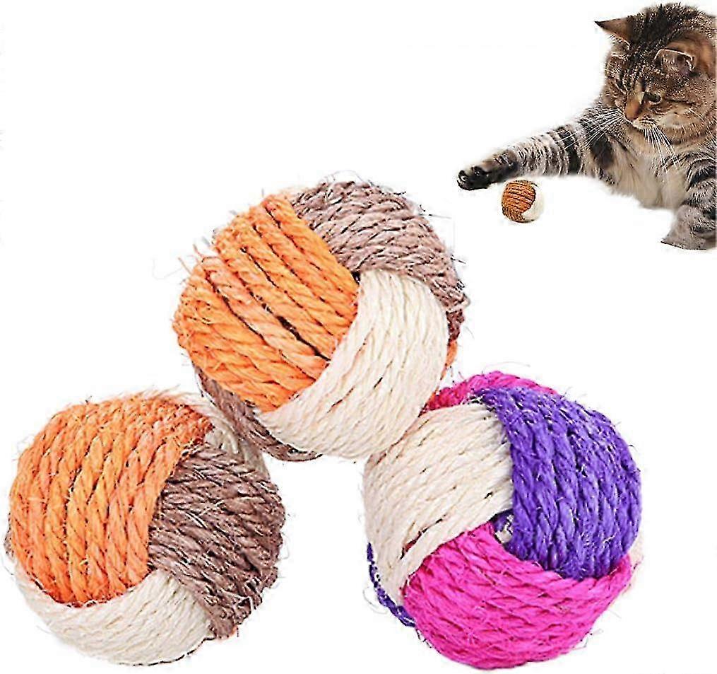 3Pcs Cat Toy Sisal Ball, Eco-Friendly Pet Scratching Ball, Durable Chew Toy, Interactive Bite-Resistant Pet Toy (Random Color)