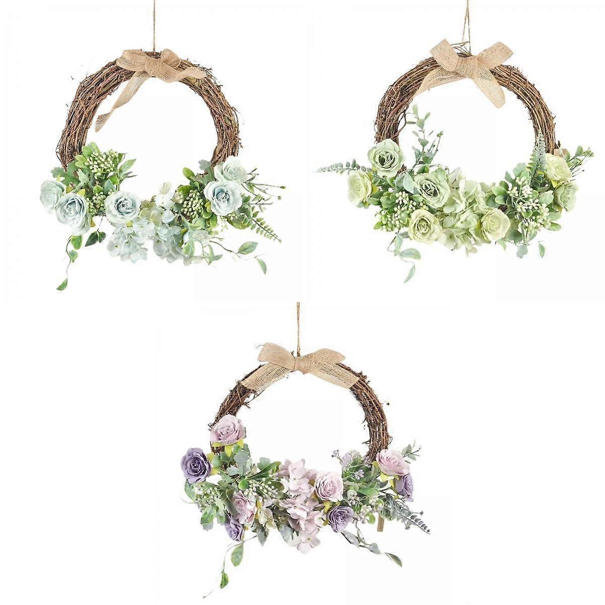 Set of 3 Pcs Rattan Hoop Flower Wreath Spring Front Garland Decoration
