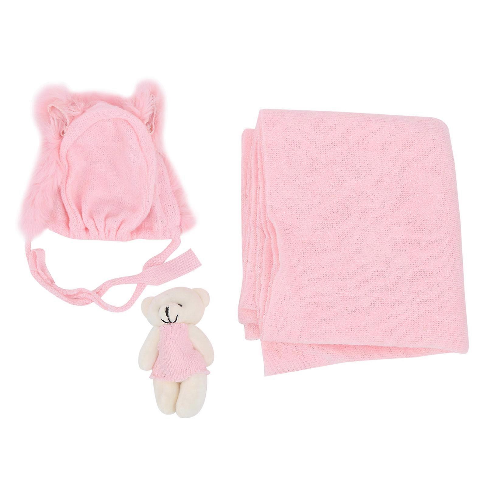 3 pcs Baby Photography Props Soft Newborn Photo Blanket Doll Hat Costume for Toddlers Pink, Photo Shoot Supplies