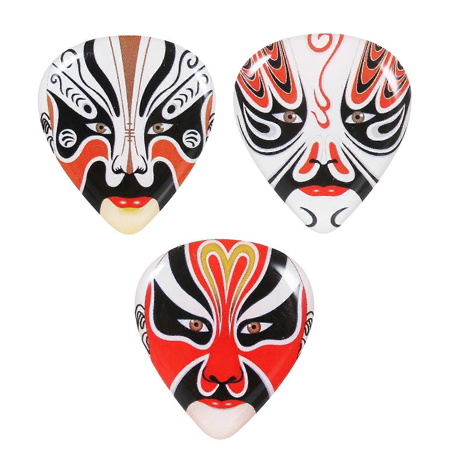 3Pcs ABS Guitar Picks with Peking Opera Mask, 3.8x3.5cm, Case Included