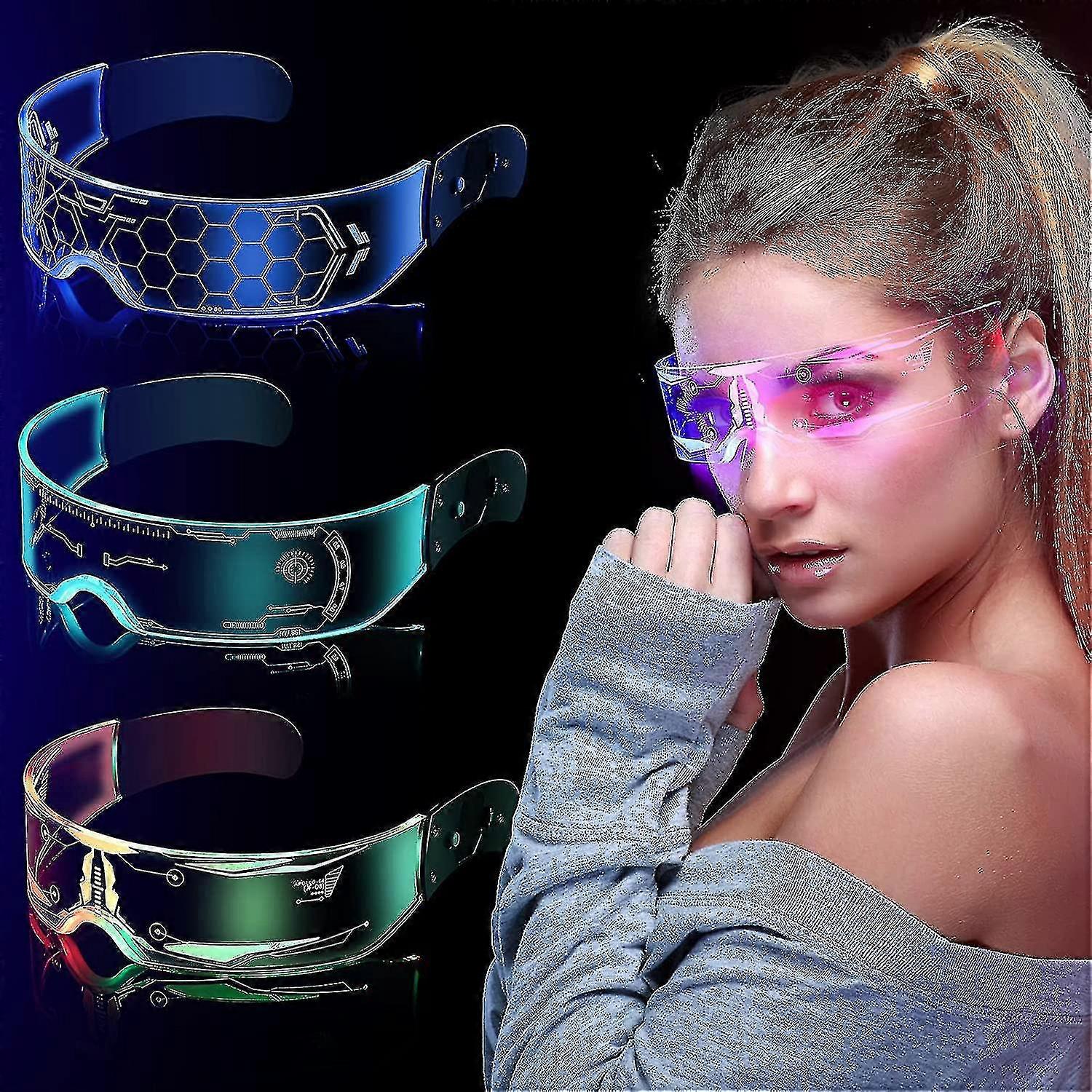 3 Pcs Led Visor Glasses, 7 Colors & 5 Modes Futuristic Glasses Cyberpunk Light Up Goggles Luminous Glasses