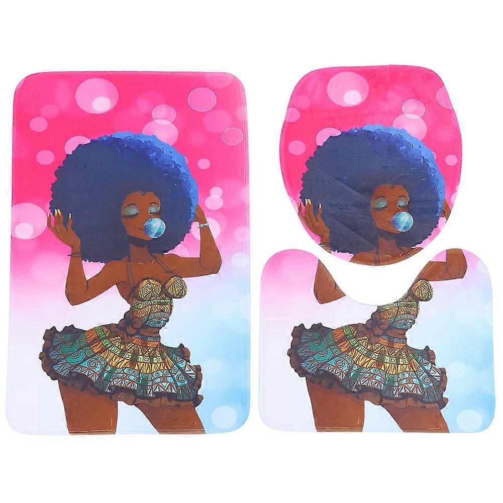 3Pcs Colorful Printed Non-Slip Shower Bathroom Mat Pedestal Rug Toilet Lid Cover Set 01#