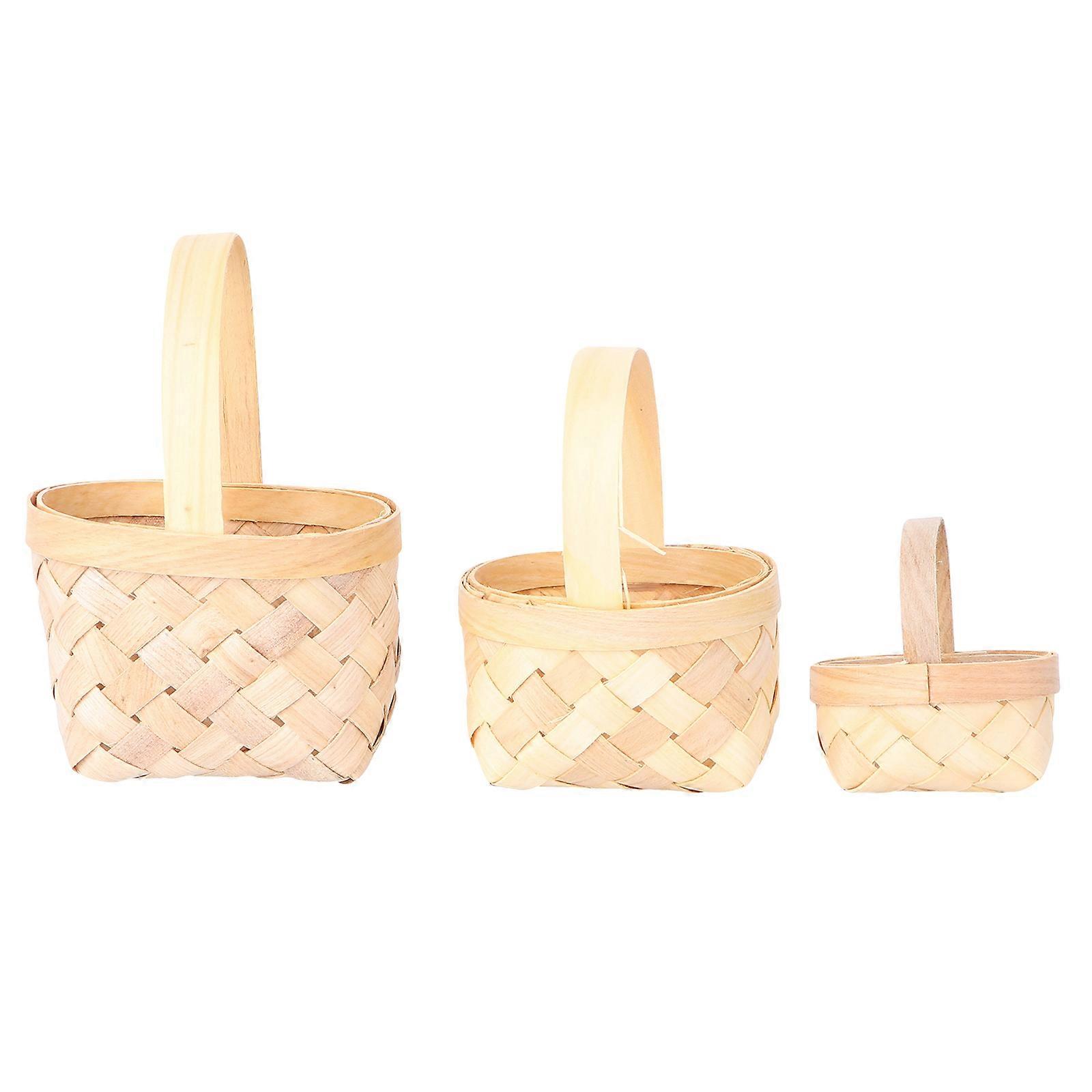 3Pcs Kids Mini Tote Basket Hand-woven Basket Plaything Playing House Accessory