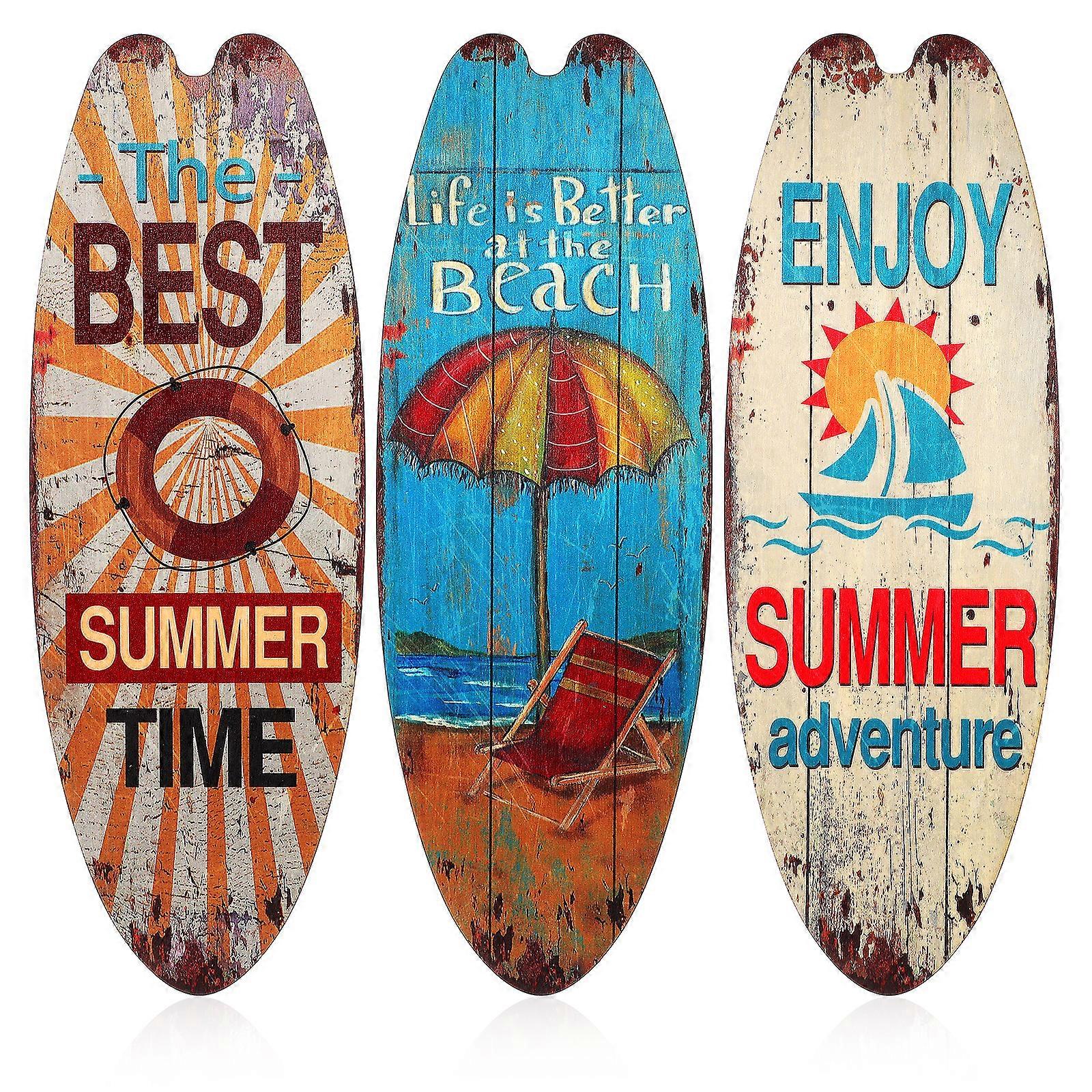 3 Pcs Surfboard Wall Decors Wooden Surfboard Decoration Decorative Surfboard Summer Beach Decoration