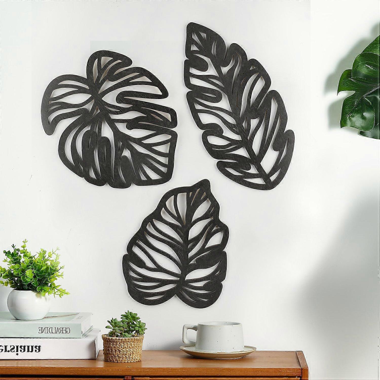 3Pcs Set Hollow Out Wooden Tropical Palm Leaf Wall Art Decor for Living Room Bedroom Decoration