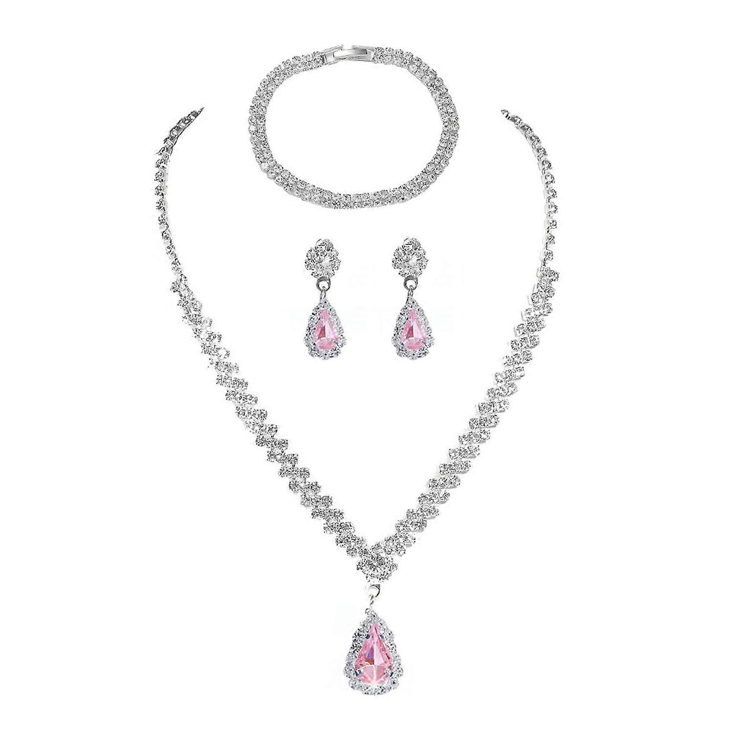 3 Pcs/Set Women Jewelry Set Rhinestone Necklace Bracelet Earrings Prom Wedding Party Bride Water