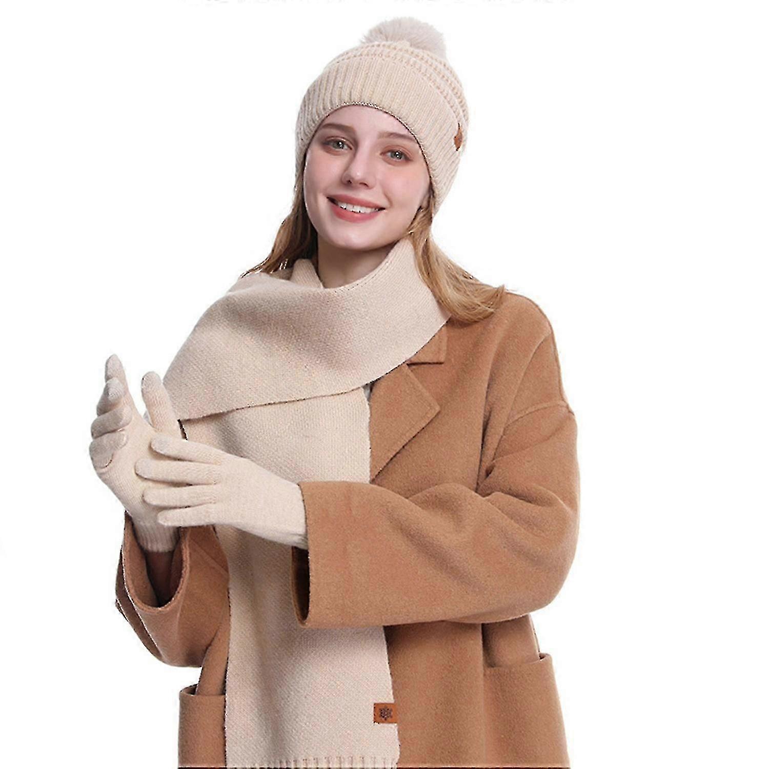 3 Pcs/Set Women Winter Beanie Scarf Gloves Set Thick Knitted Warm Cap Gloves Elastic Ear Protection