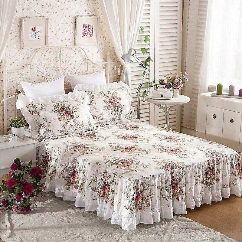 3pcs set Floral Printed Soft Bed Skirt 100% Cotton Bedspread Non-slip Bed Cover