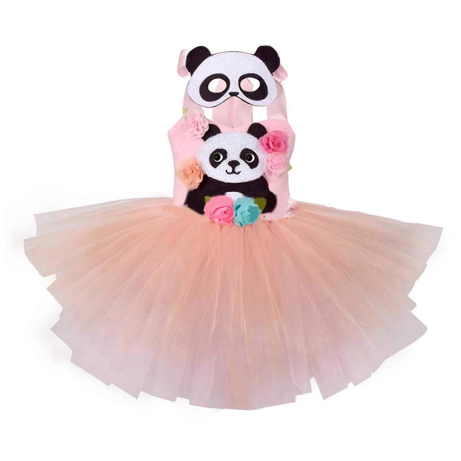 3Pcs Panda Costume Set Panda Mask Tail Tutu Dress for Halloween Christmas Party Animal Cosplay Costume for Kids Girls Pink Aged 11 to 12