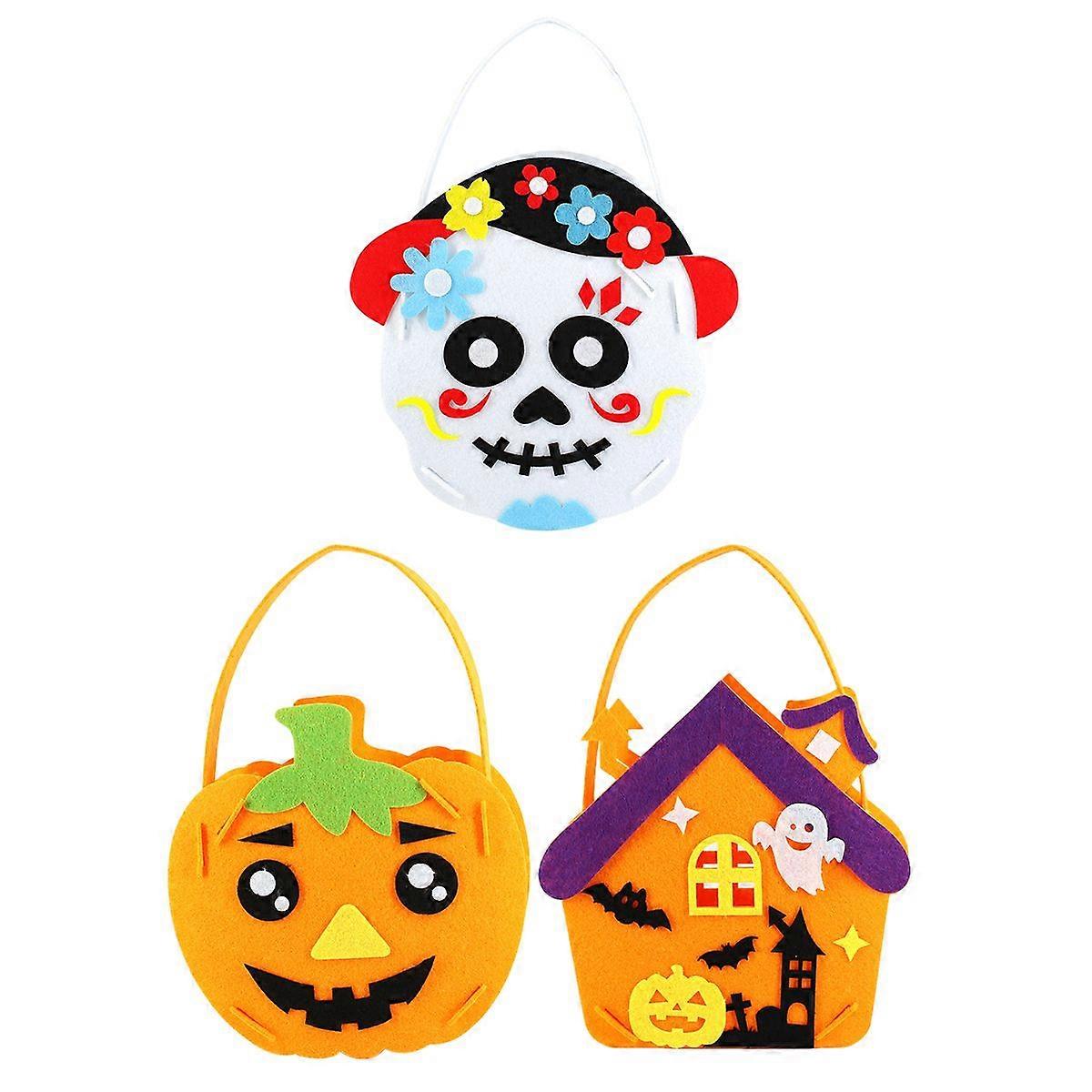 3Pcs Halloween Candy Bag DIY Trick or Treat Bag Non-Woven Gift Goody Snacks Tote