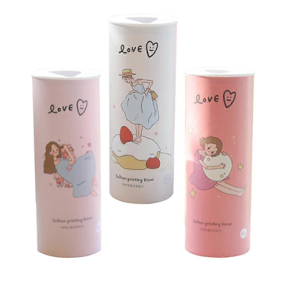 3pcs Printed Hand Tissue Cylinder Cute Car Tissue Roll Convenient Tissue Box for Cars Bathrooms Kitchens Offices Easy Replacement Travel Design