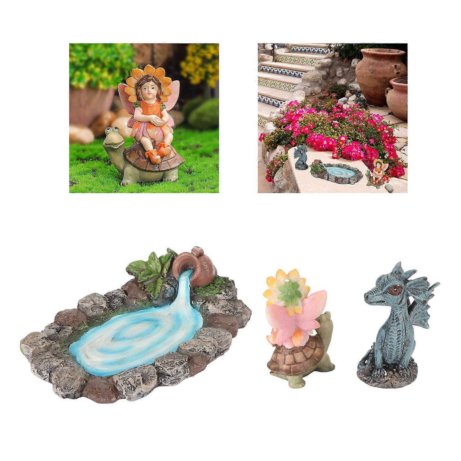 3pcs Fairy Garden Mini Fish Pond Kit Resin Waterproof Figurines