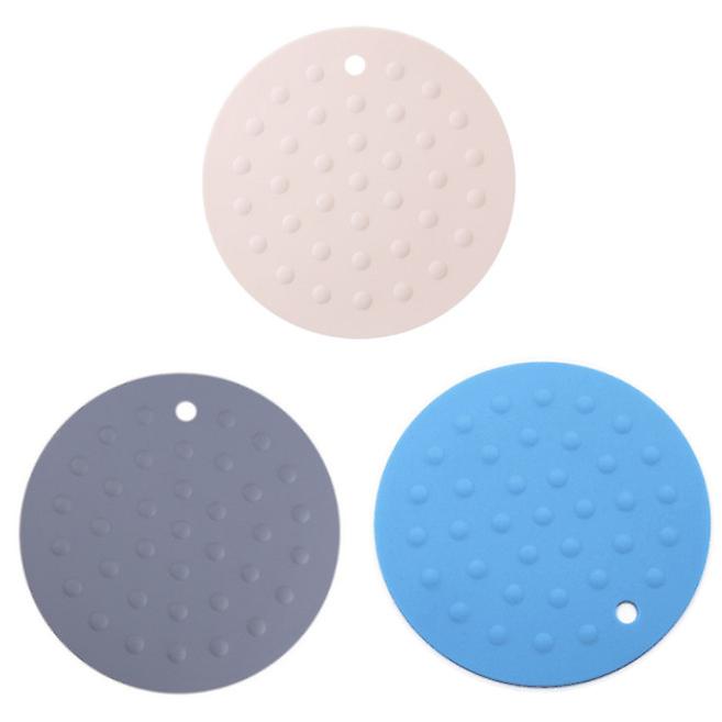 Set of 3: Includes three round double-sided dot drain silicone heat-proof insulated coasters/pot pads for versatile use. Double-sided design: Each coaster/pot pad has a textured dot pattern on both sides allowing you to choose the side that suits your needs or style. Heat-proof and insulated: Made from high-quality silicone these coasters/pot pads provide excellent heat resistance protecting your surfaces from hot pots pans and dishes. Drainage design: The dot pattern is not only decorative but also functional as it allows for efficient drainage of liquids preventing condensation or spills from pooling on the surface. Versatile use: Perfect for use as coasters to protect tabletops from drink spills or as pot pads to safeguard countertops and tables from hot cookware. Easy to clean: The silicone material is easy to wipe clean and these coasters/pot pads are dishwasher-safe for convenient maintenance. Non-slip: The textured dot pattern on both sides enhances grip and prevents items from slipping ensuring stability. Stylish and practical: These coasters/pot pads combine style and functionality adding a touch of elegance to your dining or kitchen decor while providing reliable heat protection. Specifications: