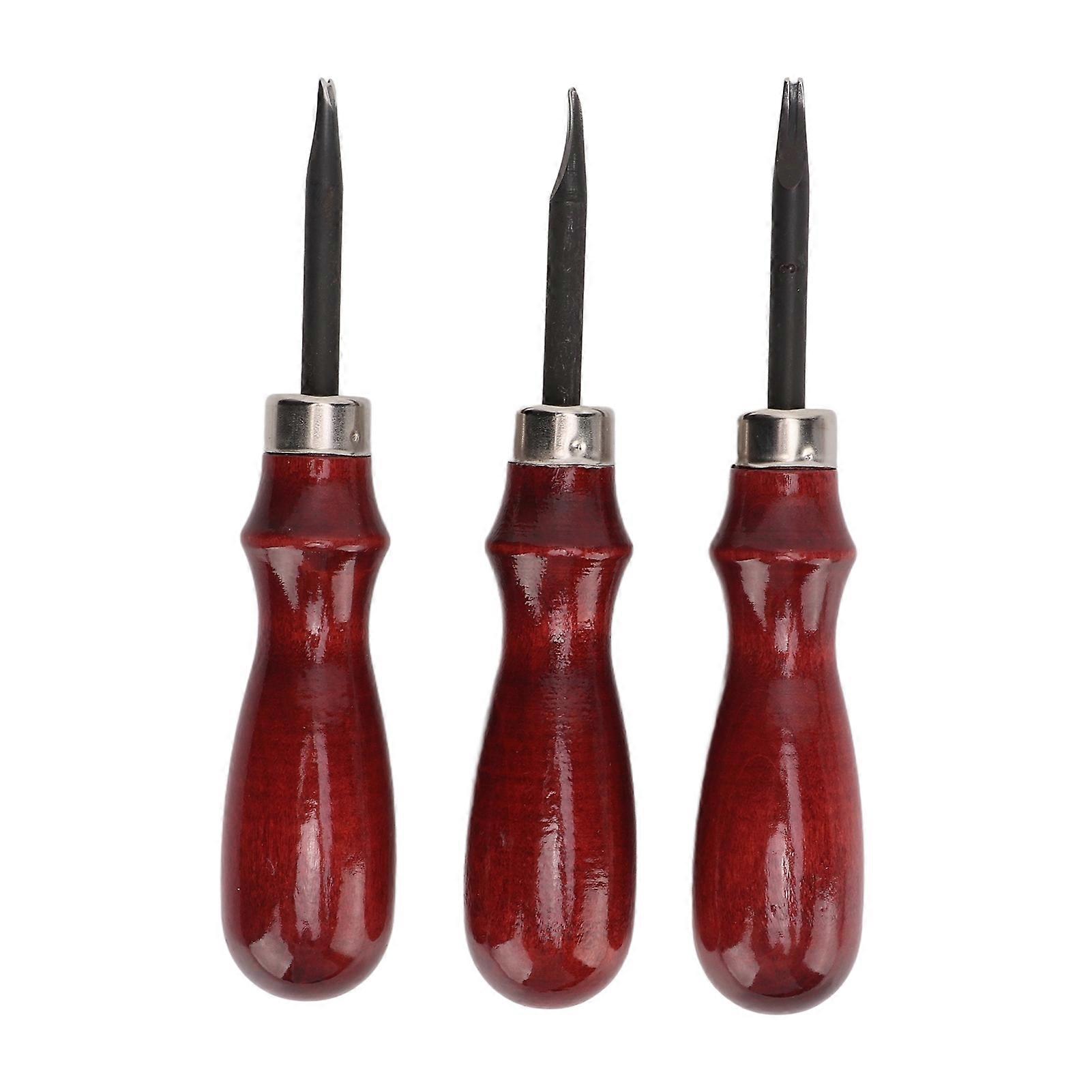 3 Pcs Leather Beveler Steel Material Sandalwood Handle Lightweight DIY Leather Edge Beveler Skiver Leather Tools