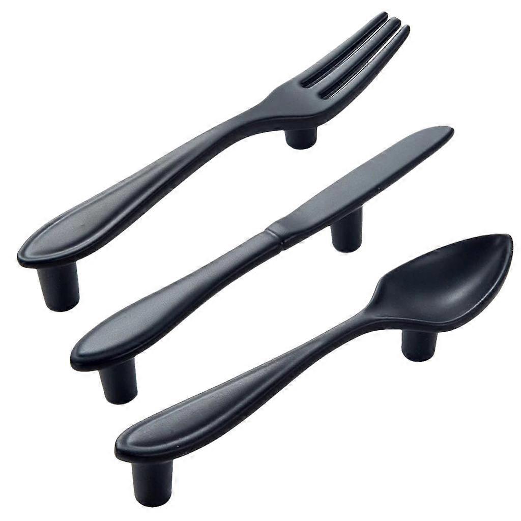 3Pcs Black Cutlery Door Knob Cabinet Drawer Kitchen Pull Handle With Screw