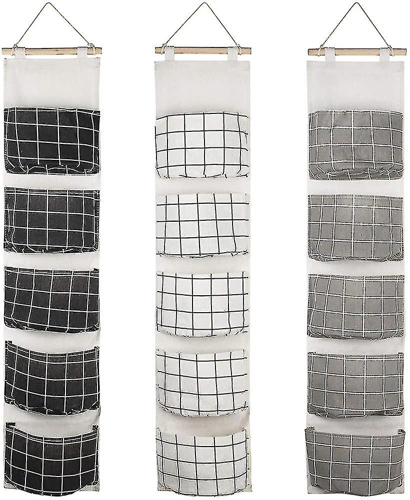 Waterproof MaterialOur Hanging Storage Bag for wall cupboards are made of lightweight cotton and linen, washable, breathable and waterproof.It is rigid and holds its shape well while hanging on the wall.Inside MOCOLOM storage bags with waterproof, waterproof and moisture resistant type coating makes your storage bag more durable. Easy to categorize and clean 5 pockets can store various light items such as cell phone, remote controls, glasses, jewelry, stick of chap, socks, chargers, mail, bills, keys and other small items that have always been lost.Cleaning of waterproof materials more convenient. Foldable Design The wooden hanger and string can be dismantled flexibly and can be folded up when not in use which squeezes our little extra storage space without extra storage. Help keep your room tidy and organized, and find small items you need. Convenient Collection Accessories Equipped with wooden bar and cotton rope, it is easy to hang in bedroom, bathroom, kitchen, office, suitable also for hanging wardrobe or rod, easy to use and save space. Package included 3 Pack x Waterproof Organizer Bags. They will help you sort and organize small items, create a neat and tidy room and add color to your everyday life.