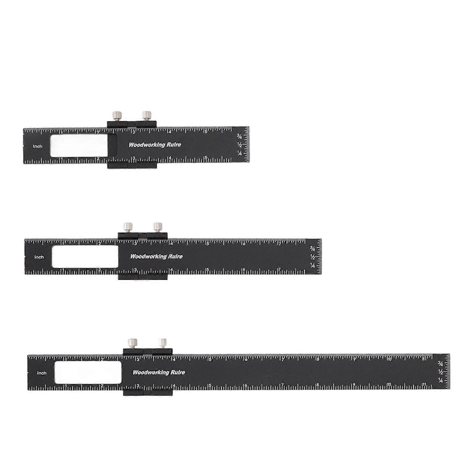 3 Pcs Woodworking Ruler Set Aluminium Alloy T Type Scribing Marking Measuring Ruler with Slide Stops