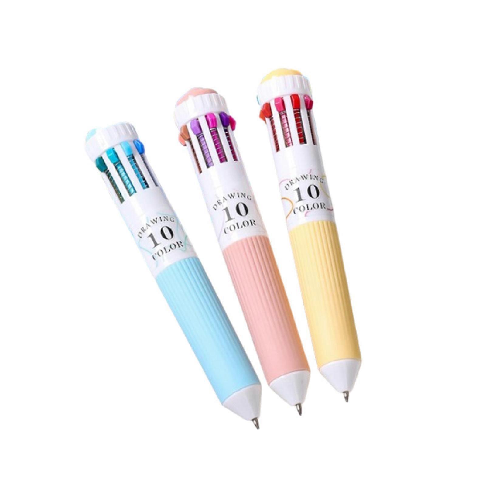 3Pcs Retractable Multicolored Pen 10-Color-in-1 Ballpoint Pens 0.8MM Tip for Student Writing Note Taking Journaling Multicolor