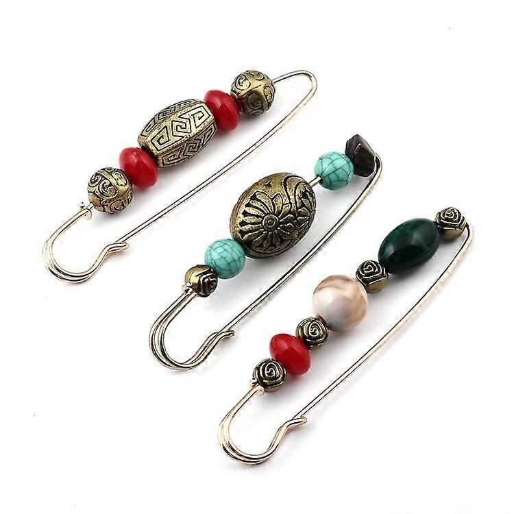 3 Pcs Decorative Collar Safety Pin Vintage Beaded Brooch Cardigan Sweater Pins Large Lapel Pin
