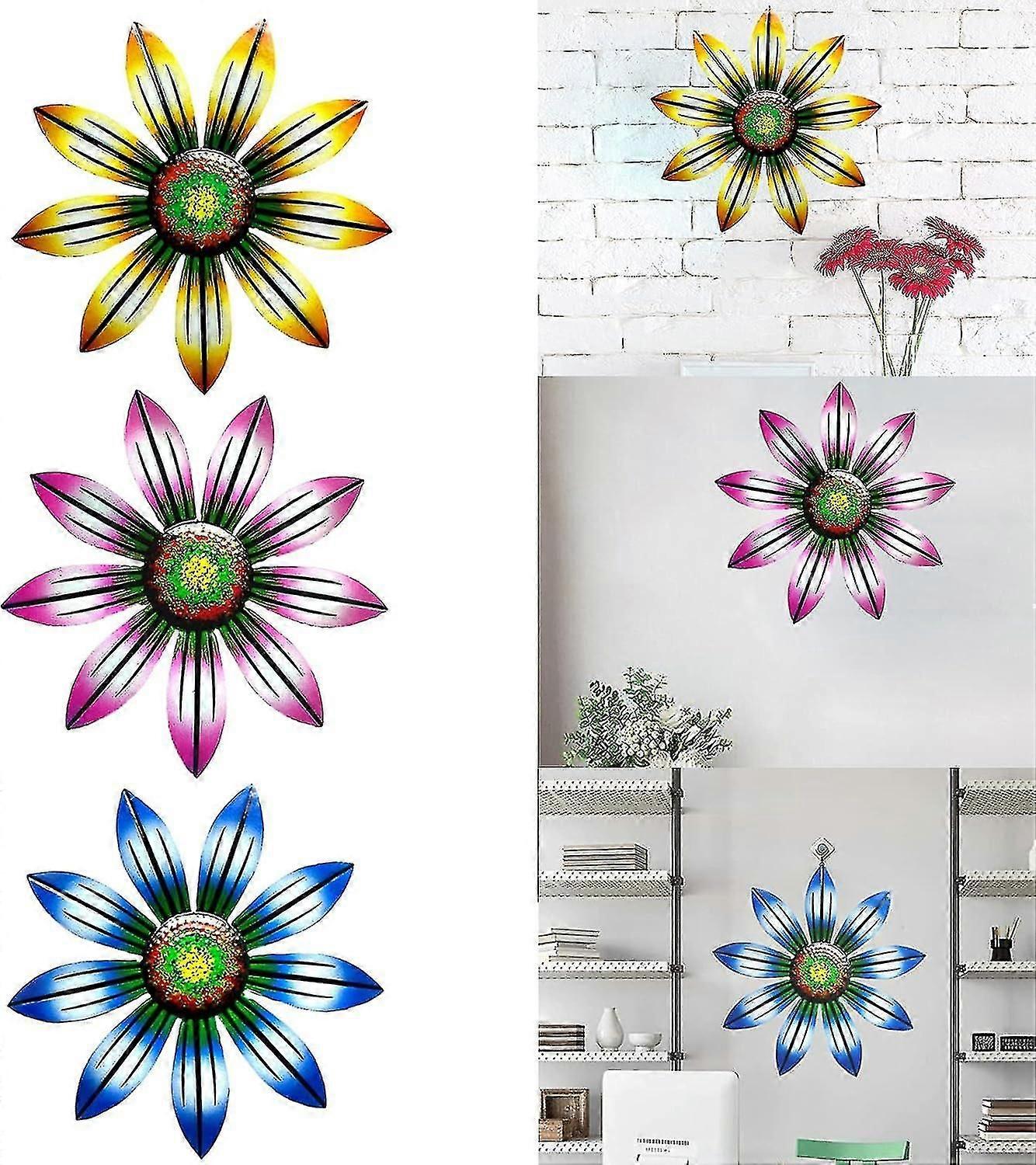 3 Pcs Metal Flowers Wall Decor Colorful Garden Fence Decor Wall Tree Fence Hanging Decorative For Bedroom