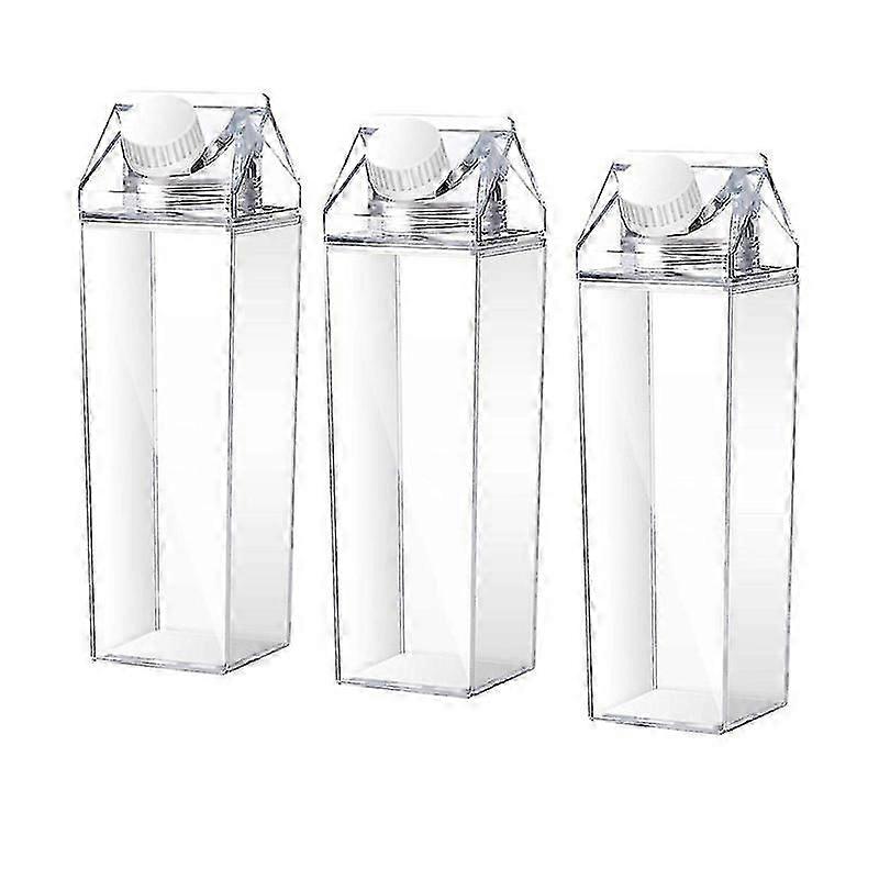 3 Pcs 1000ml Milk Water Bottle Square Plastic Coffee Milk Bottle Portable Reusable Leakproof Juice Bottle for Camping