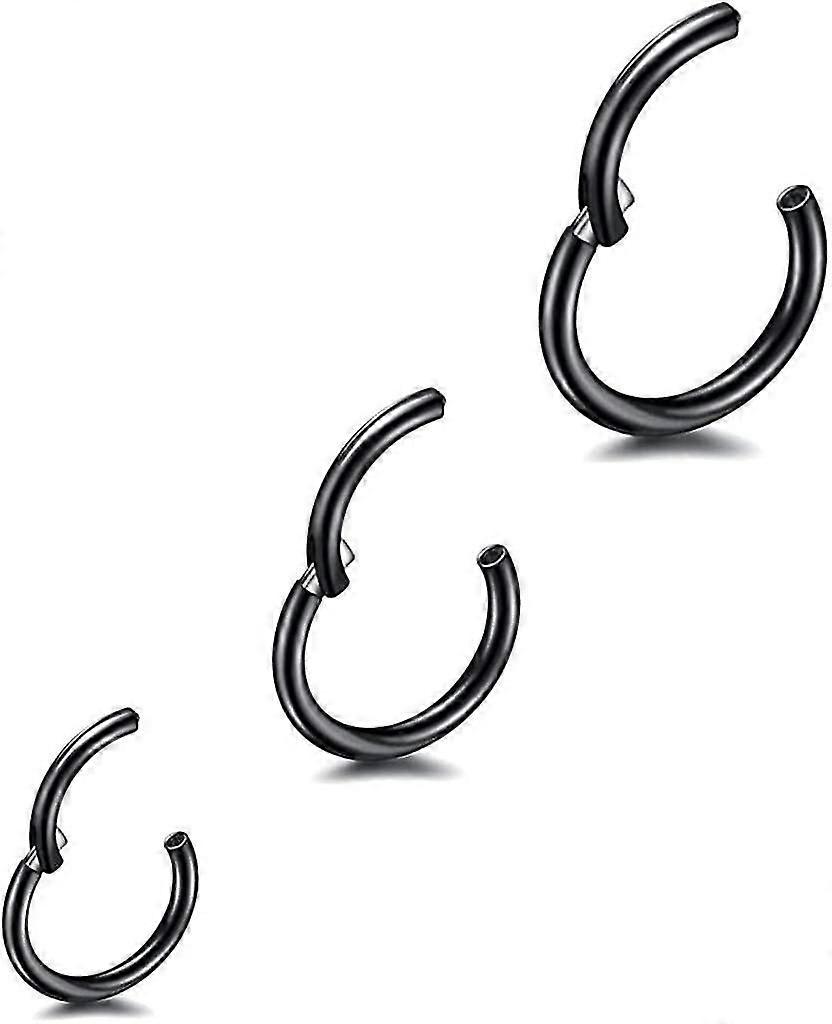 3 Pcs 8/10/12mm 16g Stainless Steel Nose Ring Black Women Men Septum Clicker Ring Nose Gift