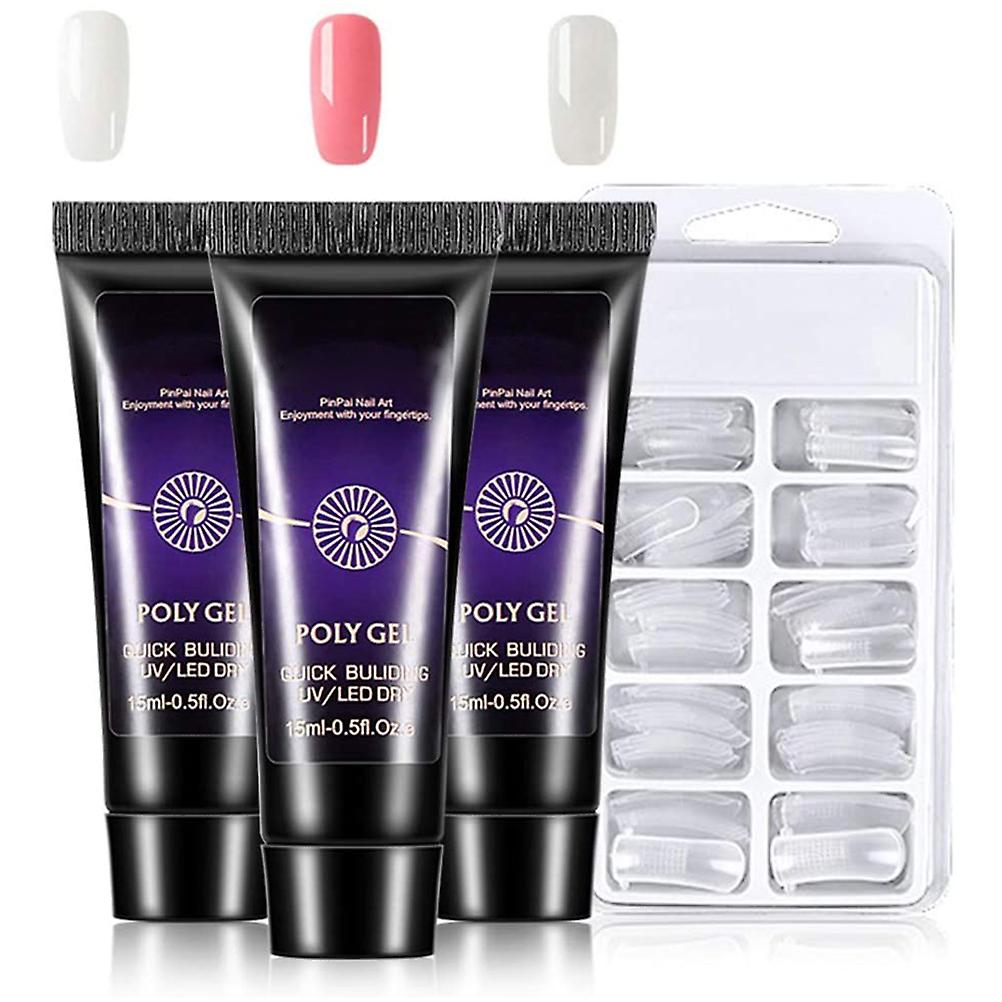 3 Pcs 15ml Nail Extension Gel with False Nails Reconstruction Kit Art Tool Set