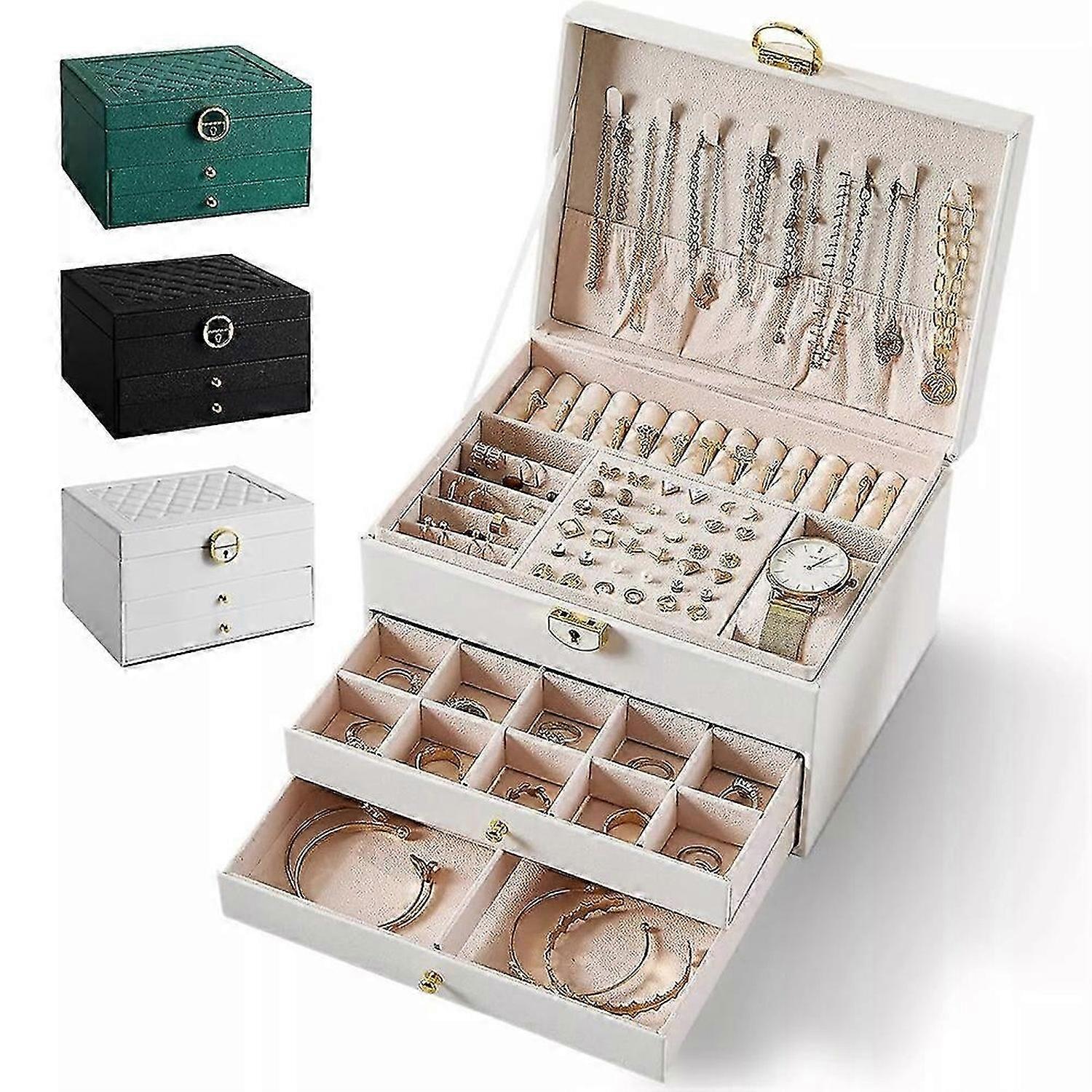 3-Layer Jewelry Box, Jewelry Holder with Drawers, Large Jewelry Boxes & Organizer Lockable Jewelry Holder for Women Mom