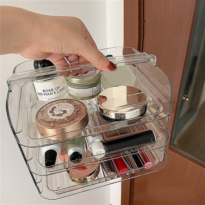 3 Tier Makeup Organizer Transparency Acrylic Dustproof Vanity Organizer Countertop with Handle for Woman