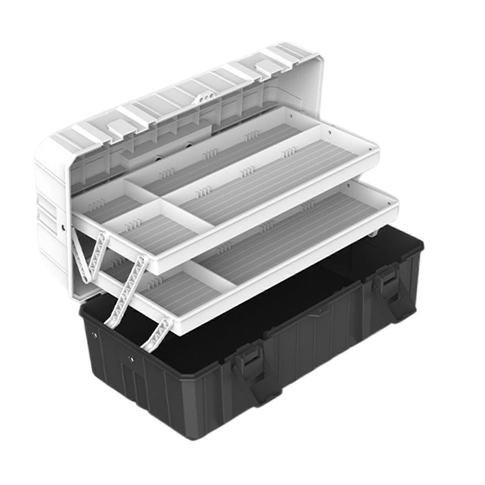 3 Layer Foldable Tool Box Suitcase Multipurpose Organizer Fishing Tackle Box 40cmx21cmx18.5cm Top Gray Base Black