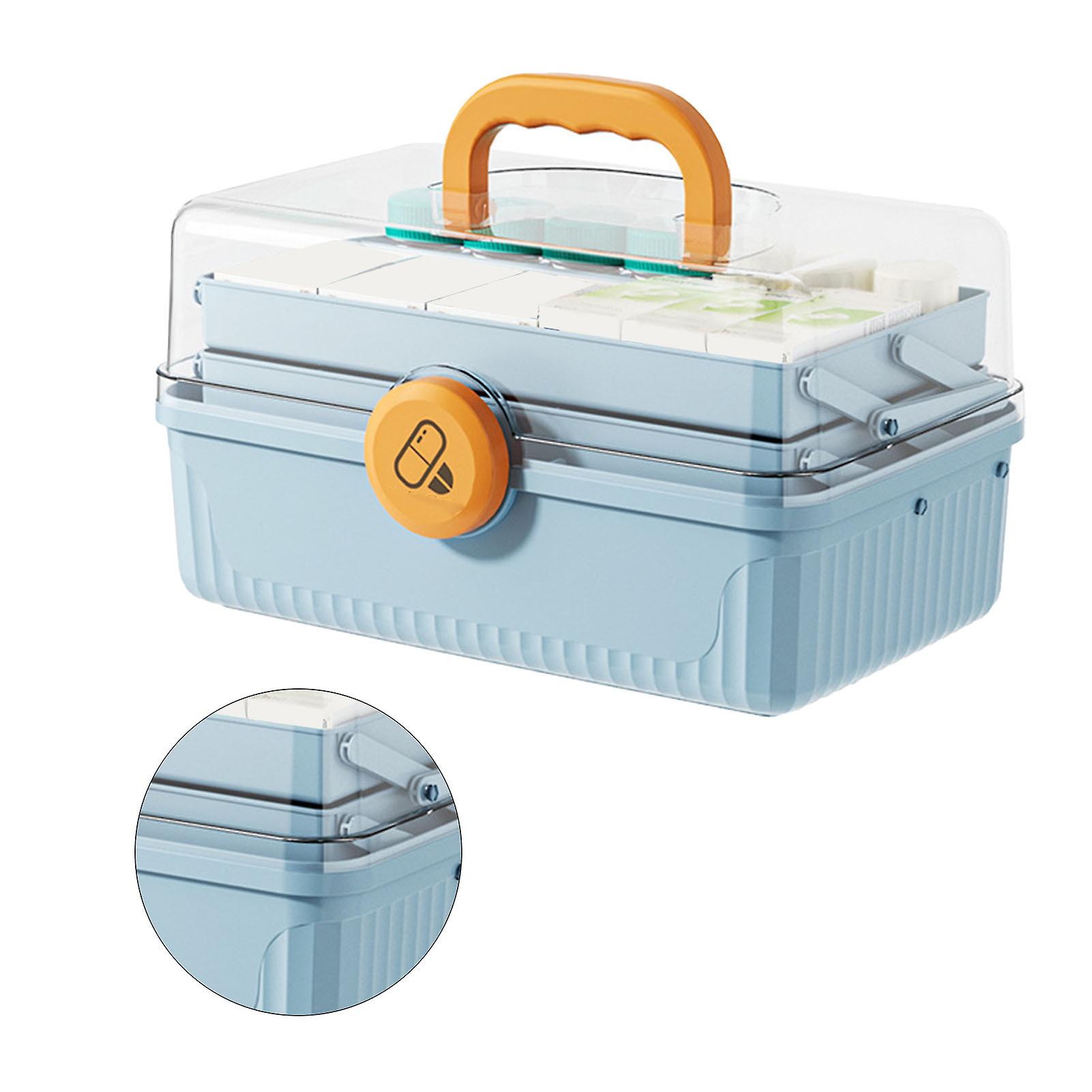 3 Layers Medicine Storage Box Large Capacity Waterproof Shockproof Portable Medicine Box for Home Outdoor Blue