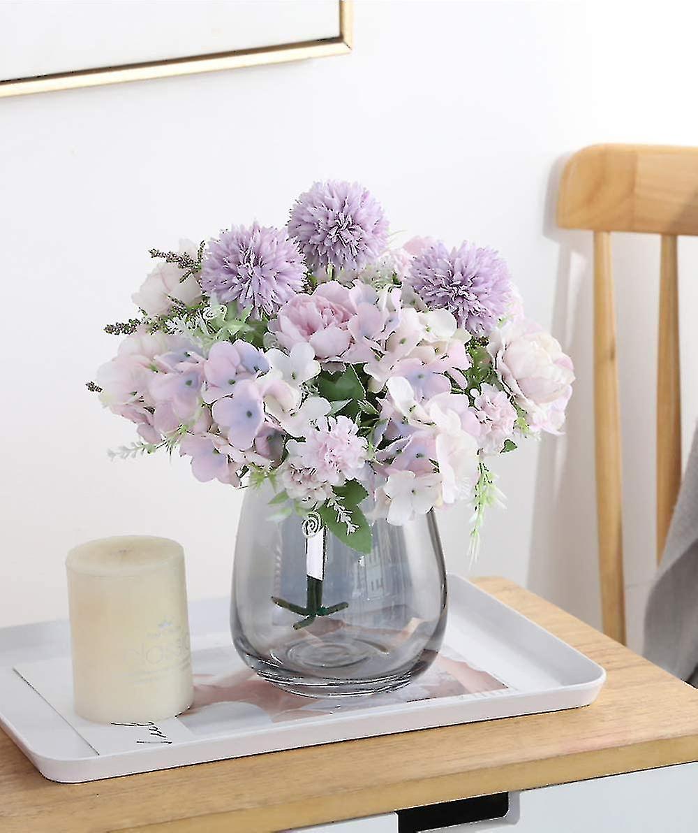1. Material: Adorable small bouquet of Hydrangea Roses Mix Artificial Flowers is made of fake mini fabric flowers.2.Dimensions and packaging This dummy bouquet measures Height 28cm and has a diameter of approximately 20cm. 3 pieces dummy bouquet will be sent in a parcel.3.Several occasions: home, hotels, landscapes, wedding. Suggest multiple chip collocation using.4.Notice: These are boxed as the heads can be squeezed together to leave them in a vase and they will naturally open, or use a hot hair dryer and the air will open them.5.DIY Flower Arrangement: Thanks to the adjustable branches, made of plastic wrapped wire, they can be bent and adjusted freely, fitting your vase and posing a beautiful shape.Purple colorHawesome 3 Pieces Artificial Rose Bouquet Hydrangea Flowers and Leaves 7 Branch Flower Arrangement Simulation Flowers Family Wedding DecorationPerfect for party, wedding, art room, office, store, home, garden, etc. Material: fabric + plastic Dimensions: Total length: 30cm; All Flower diameter: 20cm Ideal for placing in a vase, filling center pieces or home wedding decoration (vase not included).Remarks1.A bunch of 7 branches, made of plastic coiled wire, can be freely bent and adjusted to fit your vase size, as well as beautiful shape.2.Due to the plastic fake flower, maybe there will be some smell. Please place the artificial flower in a ventilated place for 1-2 days if you mind.100% ServicerHas been specializing in the production of artificial flowers for ten years. We will respond to every email within 12 hours. Please feel free to buy it and contact us anytime.