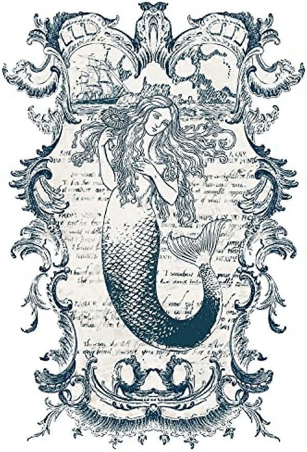 3 Sheets Mermaid Transfer Stickers Sea Wave Rub on Decor Transfers Sticker Decals for Cabinet Wood Door DIY Craft