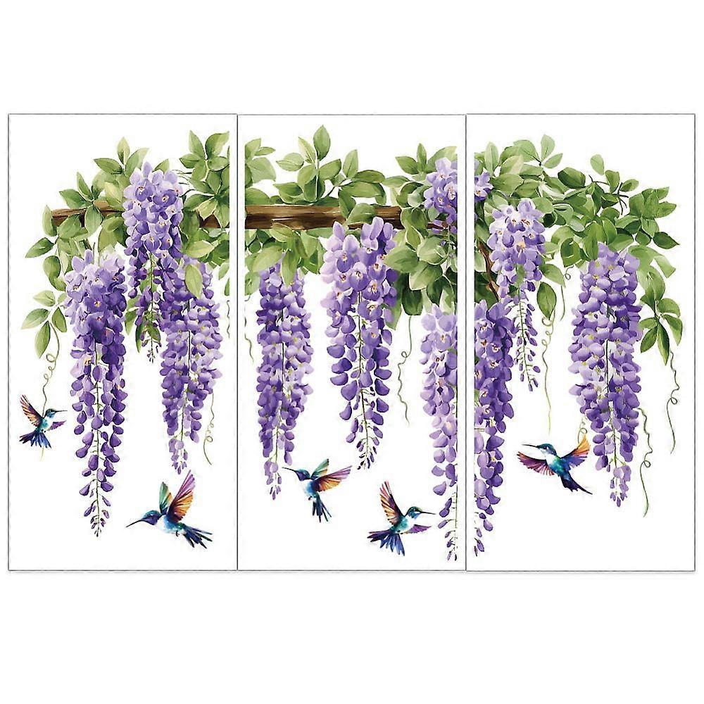 3 Sheets 3 Styles PVC Waterproof Decorative Stickers Self Adhesive Floral Decals for Furniture Decoration Wisteria 300x150mm 1 sheet/style