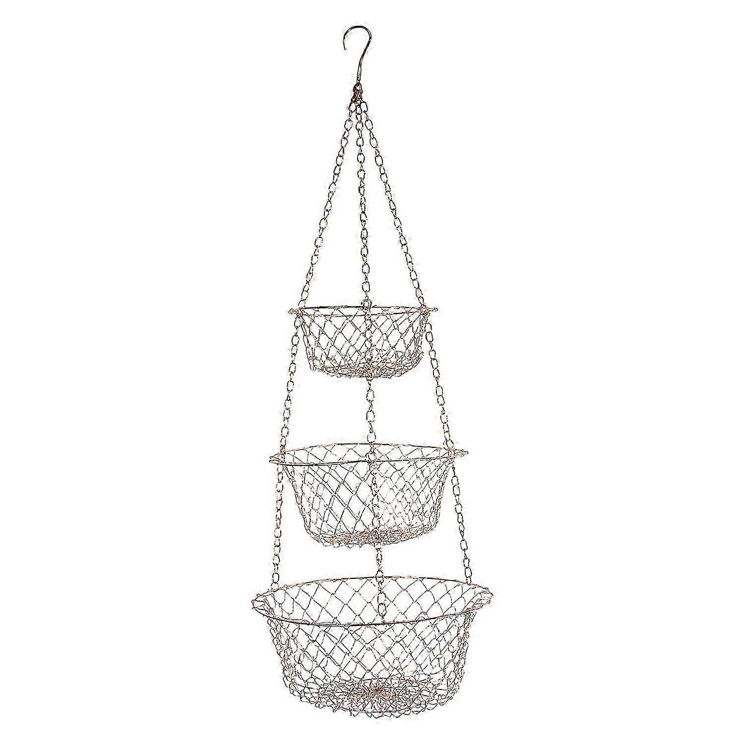 3 Tier Fruit Basket, Vegetable Kitchen Storage Basket Chain Hanging Space Saving Fruits, Plants Storage Basket(Copper)