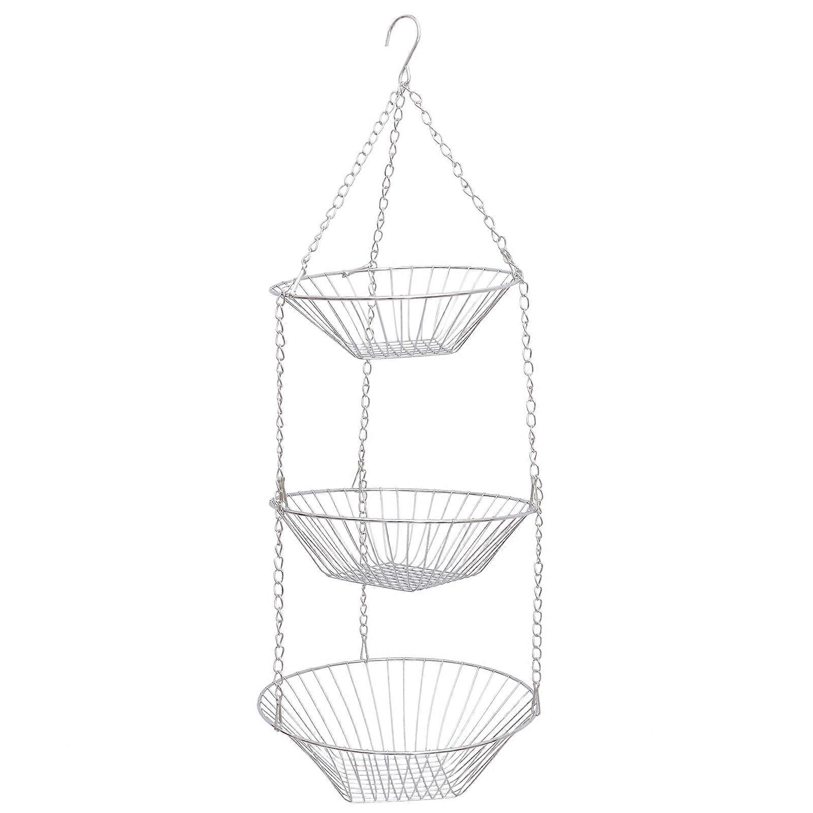 3-Tier Wire Hanging Basket Stainless Steel Basket Fruit Swing Bowl Vegetables Rack Display Stand
