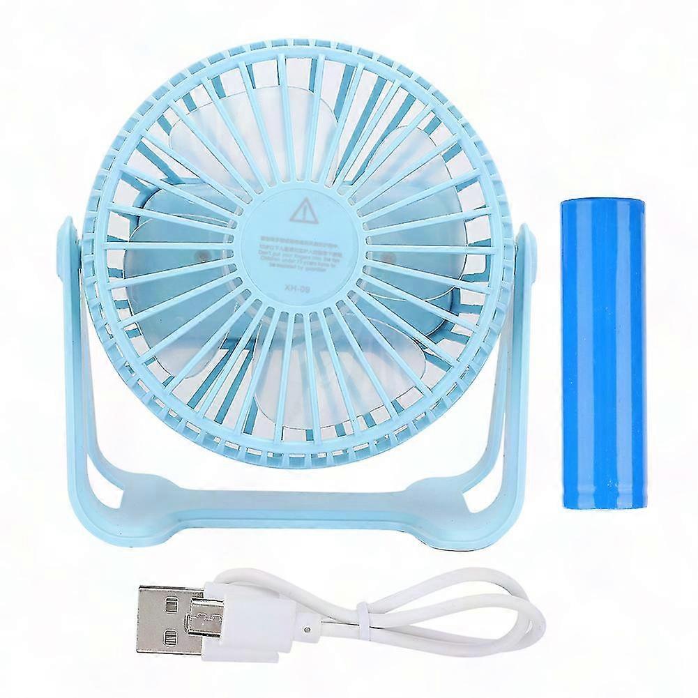 USB Mini Desk Fan with 3 Speed Settings - Rechargeable and Portable - Light Blue Color