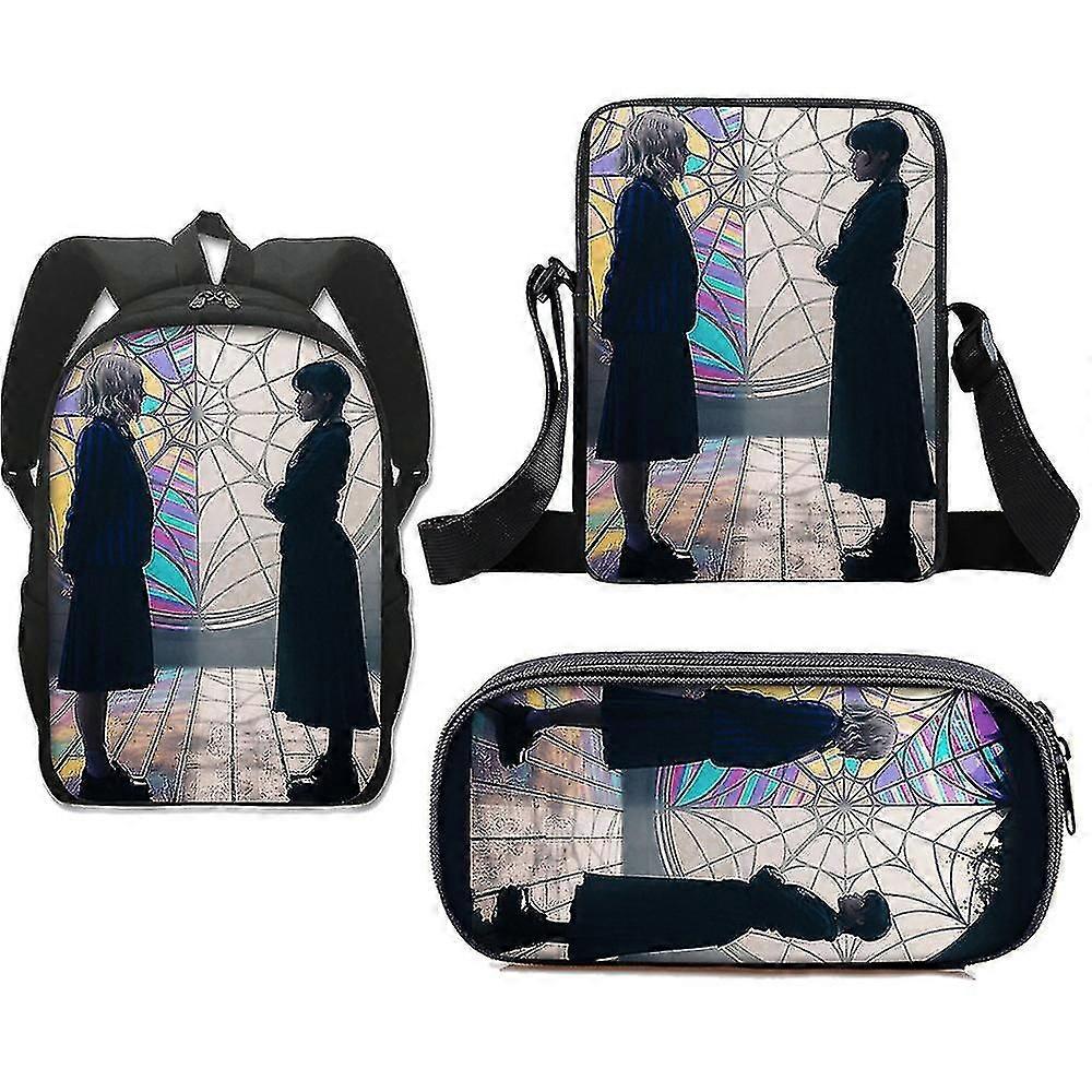 3-piece Set Wednesday Adams Schoolbag Backpack +pencil Bag +small Satchel Set High Quality