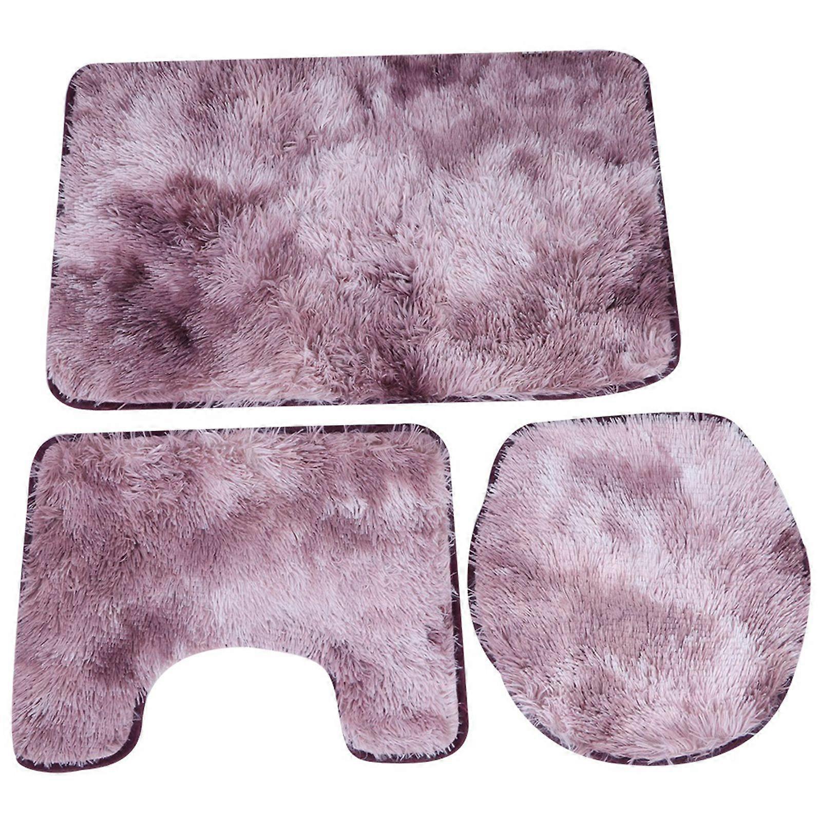 3Pcs Bathroom Rug Set Soft Non Slip Toilet Lid Cover Bath Mat Contour Rug Home DecorationRose Purple