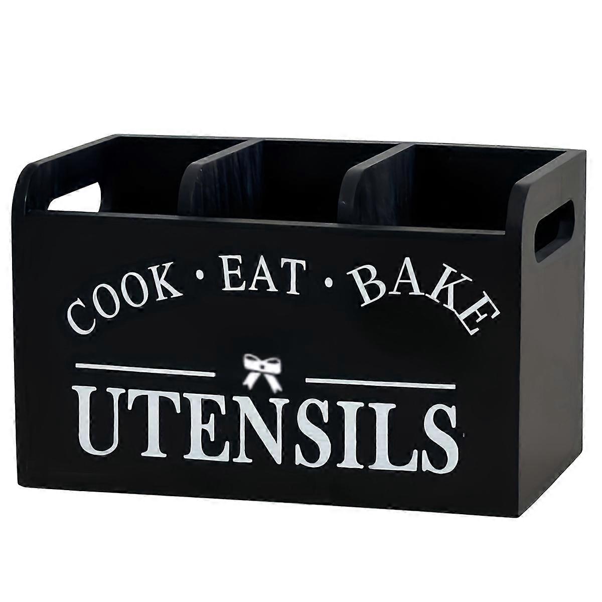 Kitchen Utensil Rack with Three Compartments Rustic Wooden Storage Box Vintage Tableware Farmhouse D